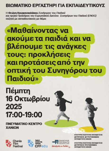 Το Υπουργείο Παιδείας, Θρησκευμάτων και Αθλητισμού θέτει (με την Αρ. Πρωτ.: 115628/ΓΔ4 από 19-09-2025) υπό την αιγίδα του τη 13η διοργάνωση των Φεστιβάλ Κινηματογράφου Χανίων/CFF και Φεστιβάλ Κινηματογράφου Χανίων στην Εκπαίδευση/CFF edu, τα εκπαιδευτικά προγράμματα και τον διαγωνισμό «Ιστορίες για ν΄ακουστούν!»
