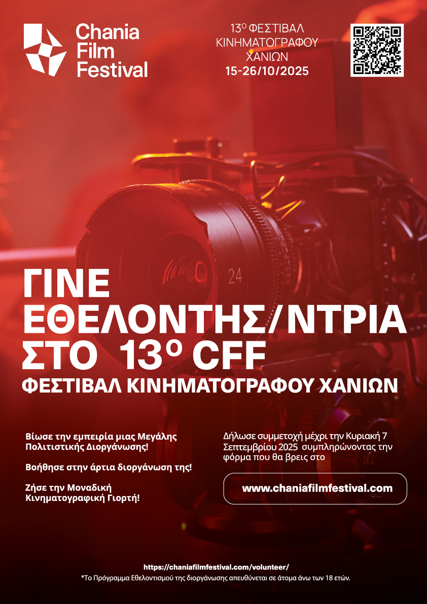 Η Πολιτιστική Εταιρία Κρήτης, ως εκπρόσωπος της διοργάνωσης, προσκαλεί άπαντες να συμμετάσχουν ως εθελοντές για την εύρυθμη διεξαγωγή του CFF, την εξυπηρέτηση των θεατών αλλά και την καλύτερη δυνατή προβολή των δράσεων.